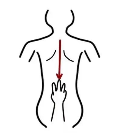 1、家长用食指、中指、无名指,放于孩子棘突的位置,向尾椎下划,看看脊柱直不直,能否画出一条直线。