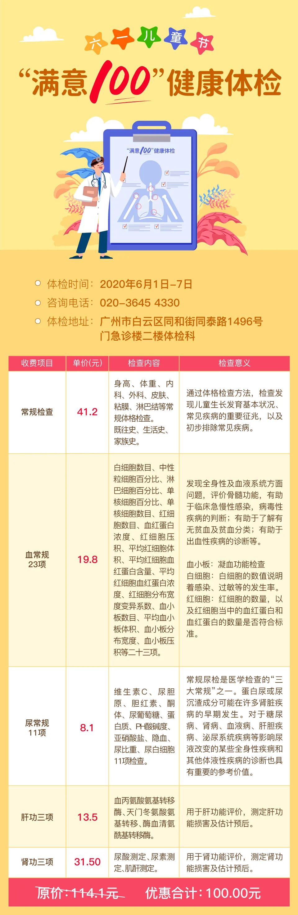 广州白云山医院特开展儿童体检优惠方案